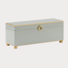 Perfect for an entryway console or living room chest with beautiful hand painted box with antique gold trim. Featuring bun feet, a round metal handle, a black velvet lining and hinged lid. Ideal for storing small personal items throughout your home.