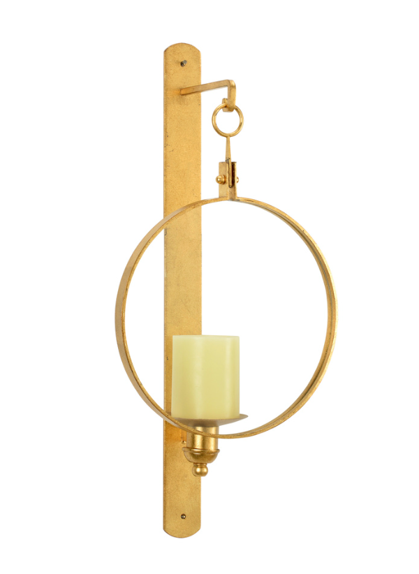 Elevate your interior with the Leggit Sconce, a sophisticated lighting fixture that marries elegance with functionality. Its antique gold leaf iron frame cradles a pristine round clear glass shield, casting a warm, inviting glow throughout your space. Ideal for creating ambient lighting above a foyer console or as a symmetrical pair flanking a mirror or artwork, this sconce delivers both visual depth and refined style. The timeless finish complements traditional and transitional décor seamlessly. Dimensions: 29.5h x 13.75w x 7.5d | Finish: Antique Gold Leaf/Clear