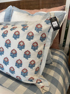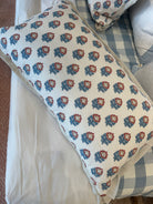 Add a splash of fun to your bedroom with the Lila Pillow! Featuring a lively coral and blue flower pattern, this king-size pillow brings cheerful charm to your space. The ticking stripe flange edge adds a playful touch of classic style, making it perfect for brightening up your bed while providing cozy comfort.