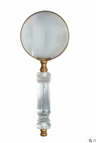 Elevate your reading experience with this Lucite Magnifier, featuring a classic design handle crafted from clear lucite. Its elegant simplicity offers both style and comfort, making it a refined accessory for detailed work or leisurely reading. The transparent handle adds a timeless touch, blending seamlessly with any décor while providing a sophisticated grip.