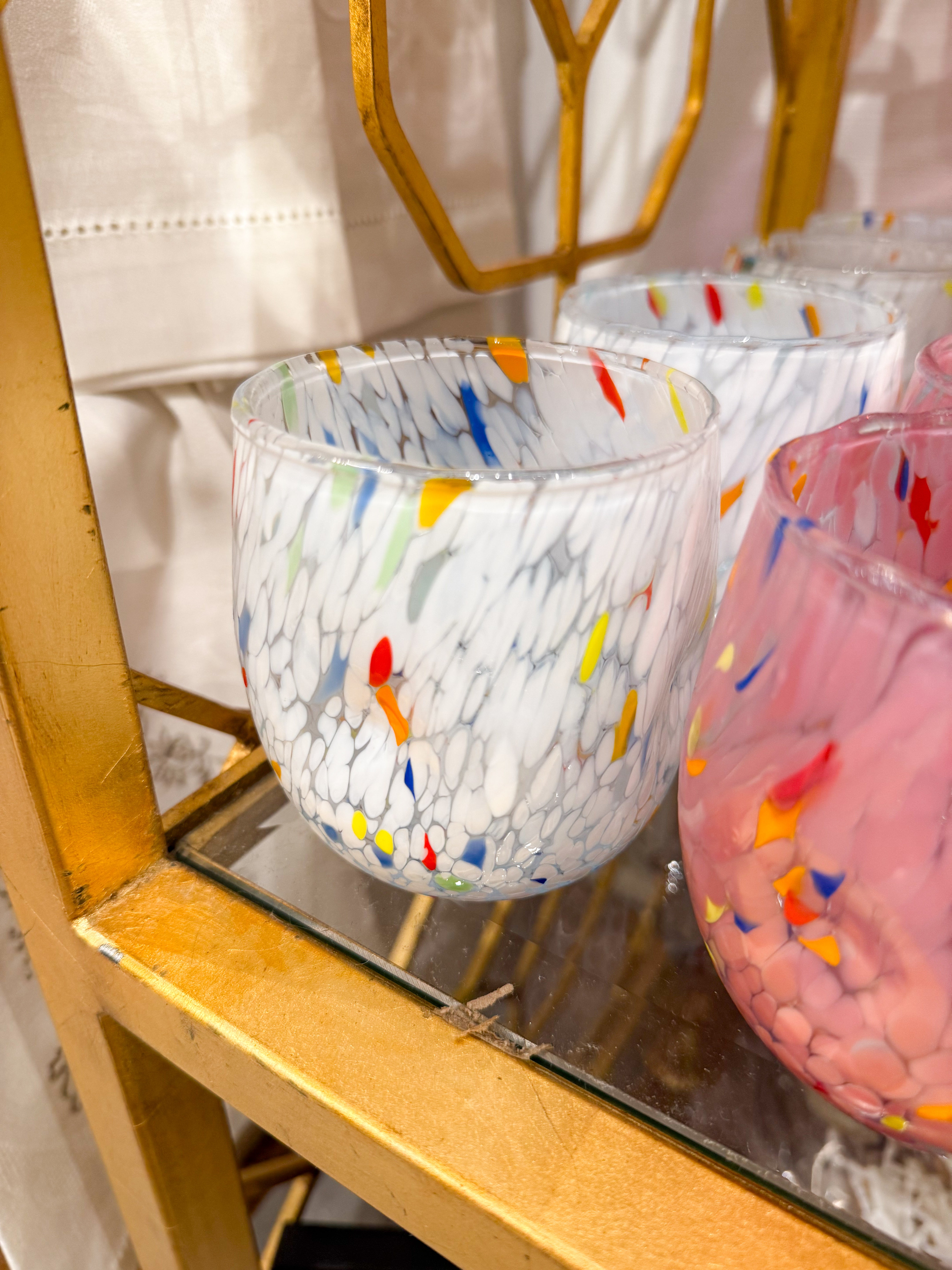 Vibrantly hued Murano rocks glasses bursting with color and charm. colored Murano Rocks Glasses