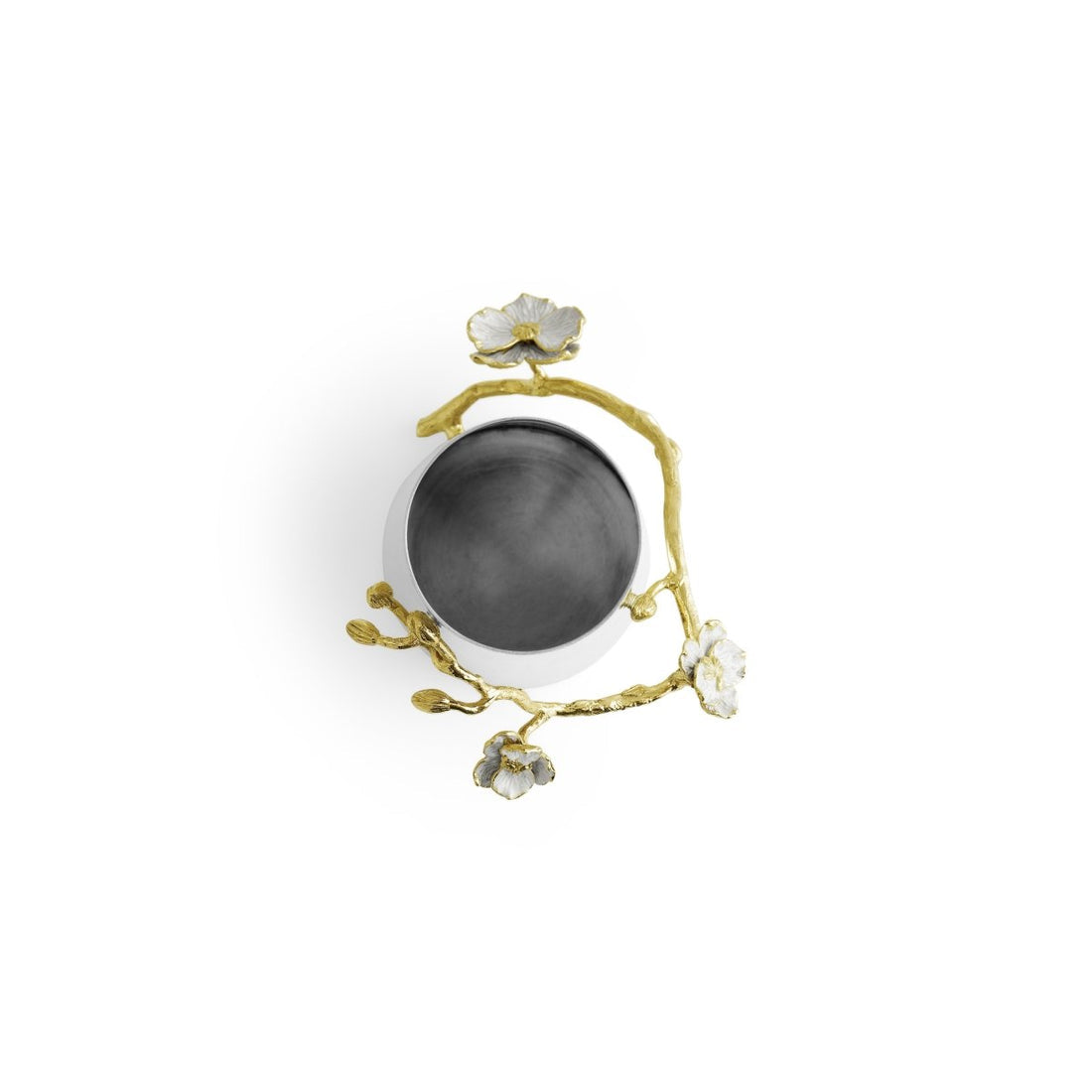 "There is something so captivating about orchids. Rendered with white enamel over golden brass, each bloom glistens with quiet vibrance. The elegant composition of finishes creates a perfect balance, evoking a feeling of subtle luxury. Each stem feels so delicate and weightless, belying the fact that the pieces are forged in metal and anchored in marble, crafted to last an eternity." -M.