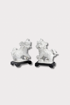 Elevate your décor with this exquisite pair of White Fu Dogs, meticulously crafted from premium white ceramic. Each guardian figure measures 13.5 x 12 x 7 inches, creating a commanding presence while resting atop separate wooden bases that provide elegant contrast. These timeless symbols of protection and prosperity bring refined Eastern aesthetics to contemporary interiors.
