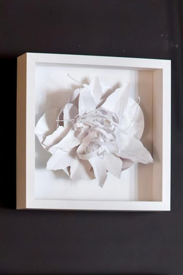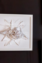 Introducing our exquisitely crafted Paper Flower Sculpture. Made from paper and plaster, these delicate flowers are elegantly mounted on a frame, creating a stunning piece of art. Add a touch of sophistication and luxury to any space with this unique and exclusive sculpture.