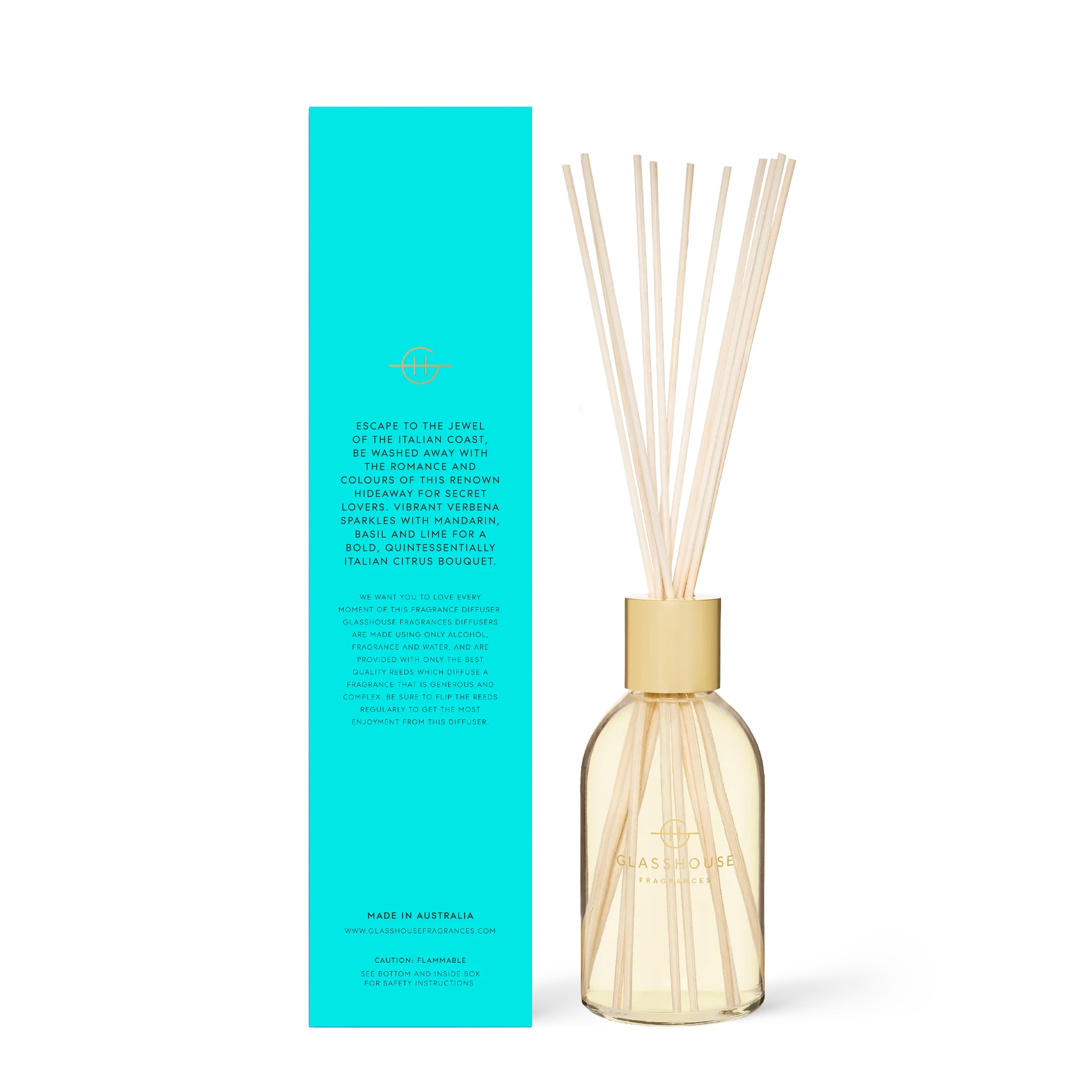 Made using only alcohol, fragrance and water and are provided with only the best quality reeds which diffuse a fragrance that is generous and complex. Made in Australia.