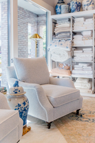 Indulge in incomparable comfort with the opulent Profiles Chair, enveloped in sumptuous Soft blues and white hues, complemented by the Spring Ultradown Cushion for an elevated touch of refinement. Featuring dimensions of 37 x 41 x 34, it seamlessly fuses style and support.