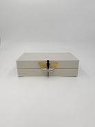 Each box in this collection is made with MDF wood covered in 13-15 layers of lacquer with a dragonfly pin closure with buffalo horn.