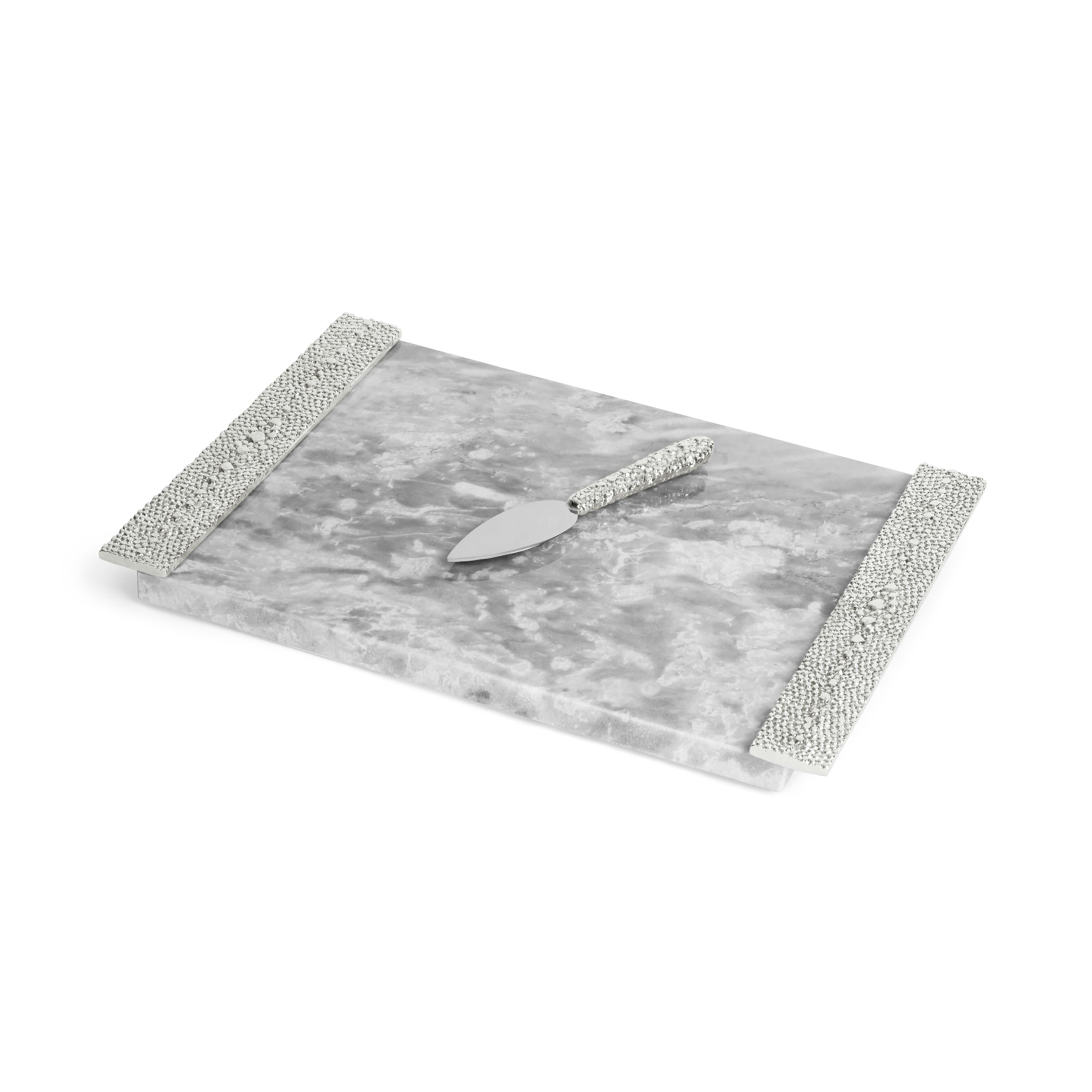 The Sparkalite Marble Cheese Board and knife are adorned with pebble textured handles to add refined luxury to your home. Vamp up your charcuterie board or cheese plate for your next celebration with this glamorous set.