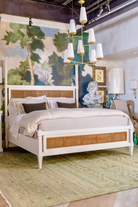 Introducing the Strand King Poster Bed - a true masterpiece of woven cane panels and elegant design. Meticulously crafted with a removable canopy and interchangeable post caps, this bed offers three customizable configurations. The White Tides finish creates a sophisticated contrast. Embrace luxury like never before.