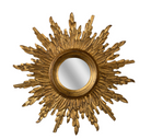 This striking convex mirror features ornate detailing and a warm antique gold finish that casts a luminous glow throughout your space. The Sunbeam's curved design creates visual depth while reflecting light to enhance brightness and dimension. At 25 inches square, it commands attention as a standalone statement piece or pairs beautifully with coordinating mirrors for a curated gallery wall. The sophisticated gold tone complements both traditional and contemporary interiors, making it an elegant addition to entryways, living rooms, or bedrooms.
