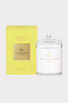 WHAT IT ISInspired by the pink sand and the gentle breeze that blows tangelo, grapefruit, and geranium to billow linen, Glasshouse Fragrances' Sunkissed in Bermuda candle is as if the sun has a smell. Burn time: about 80 hours. 13.4 oz. Made in Australia.TOP NOTES