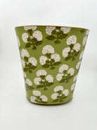 The Sage Hydrangea Collection features a hand-painted waste basket and Kleenex cover adorned with elegant hydrangea and sage motifs. Designed to complement Bassett McNab wallpaper, these pieces bring a refined touch of nature-inspired artistry to your space. Ideal for adding subtle sophistication and cohesive style to any room, they combine functionality with timeless beauty.