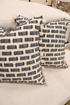 Indulge in luxury with The Irma Pillow. With its unique fringed design, this pillow adds texture and dimension to any space. The elegant linen background and denim accent fabric are complemented by the navy pom pom fringe, elevating any room to a sophisticated and exclusive level. Add a touch of artful beauty to your home with The Irma Pillow.