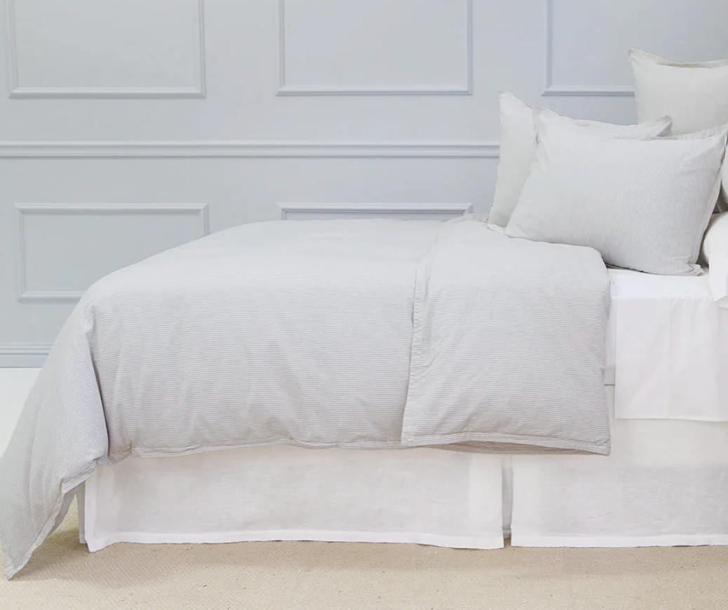 Expertly crafted in Portugal, The Luke Collection boasts small, subtle stripes on both sides of its crisp, 100% cotton fabric. The 1/2 inch finished flange and shell-button closures add a touch of sophistication. Transform your bedroom with this luxurious yet understated collection.