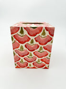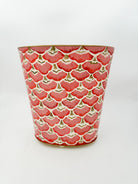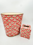 Elevate your space with the Poppy Scallop Collection, featuring a hand-painted coral floral waste basket and matching Kleenex cover. Delicately crafted with fan-shaped motifs reminiscent of flower petals and scallop shapes, this set adds refined artistry and subtle sophistication to your décor. The elegant design brings a harmonious blend of functionality and timeless beauty to any room.
