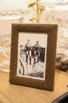 Indulge in opulence with this exquisite photo frame, adorned with shimmering golden beads and inspired by the effervescence of champagne. Crafted from natural linen and high-quality glass, it is a luxurious addition to your home decor.