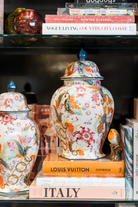 Elevate your interior aesthetic with our Tobacco Leaf Hex Jar, a refined porcelain vessel featuring distinctive hexagonal geometry. Adorned with elegant navy blue decorative details, this sophisticated piece commands attention whether displayed on a curated shelf or paired symmetrically on a mantle. Each jar includes a convenient lift-off lid and is sold individually, offering versatile storage with artistic sensibility.