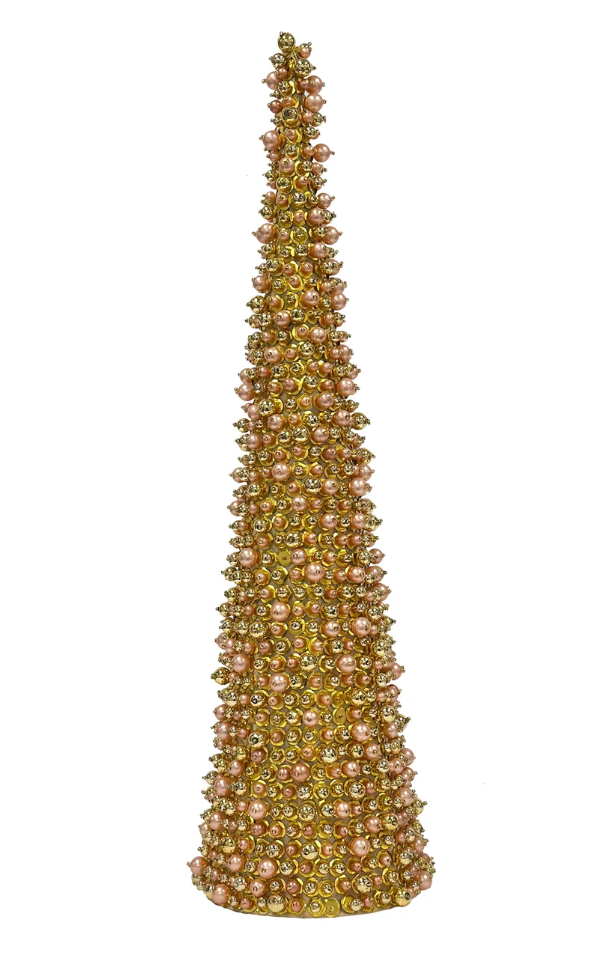 25-Gold Jewel and Pearl Cone Tree
