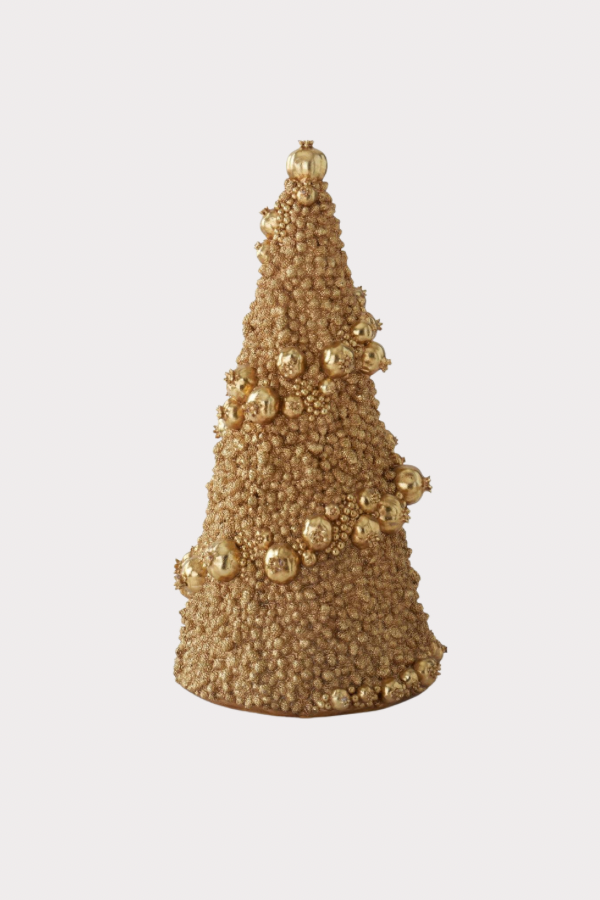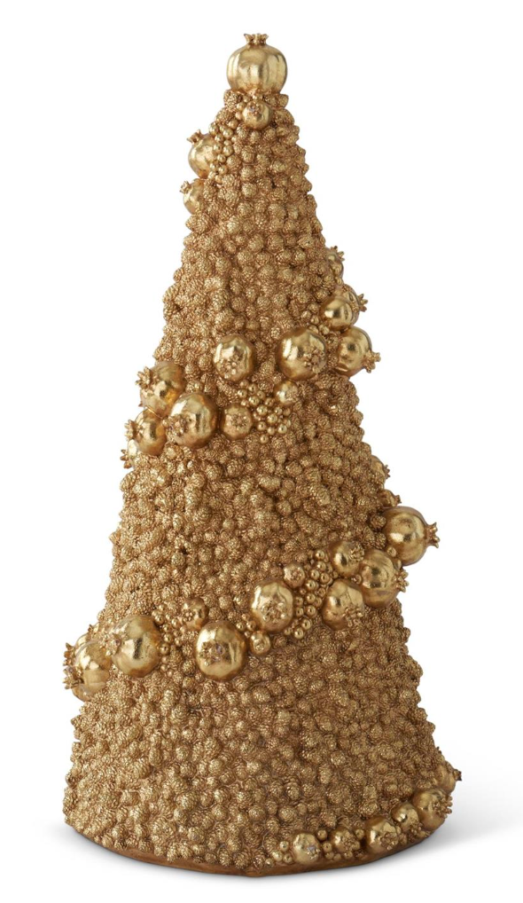 25- 24.5 Inch Gold Resin Mini Pinecone & Pomegranate Tree