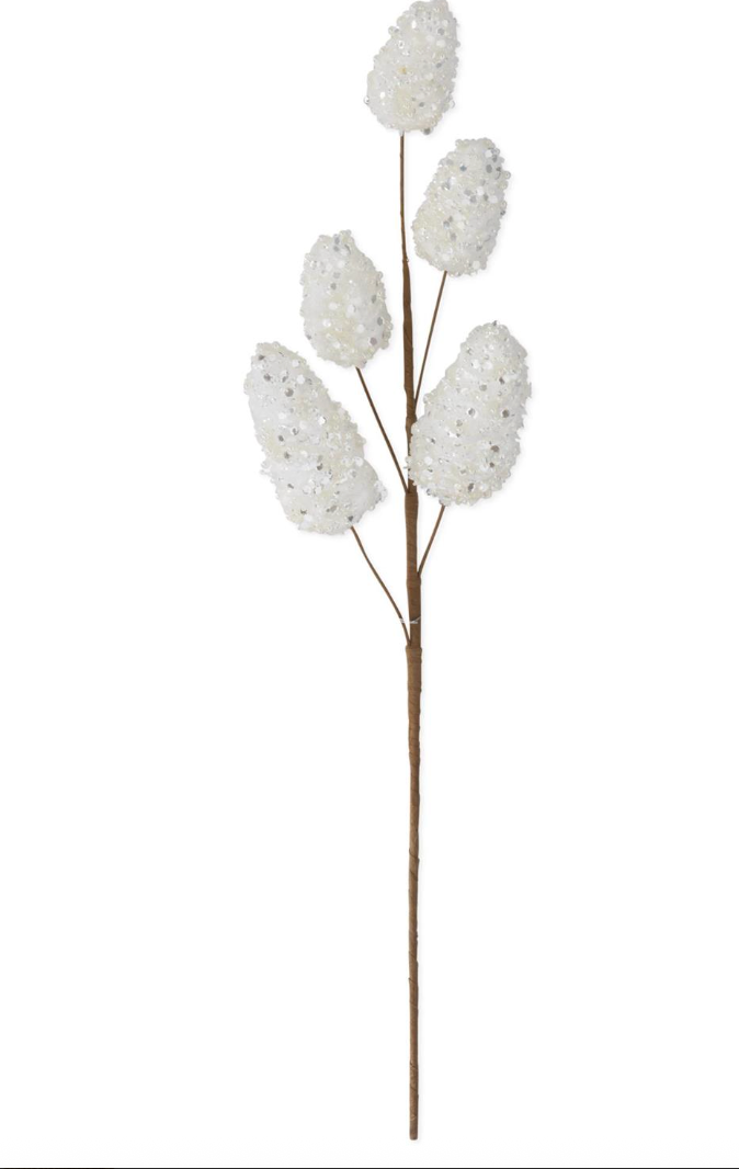25- 28 Inch White Beaded Pinecone Stem