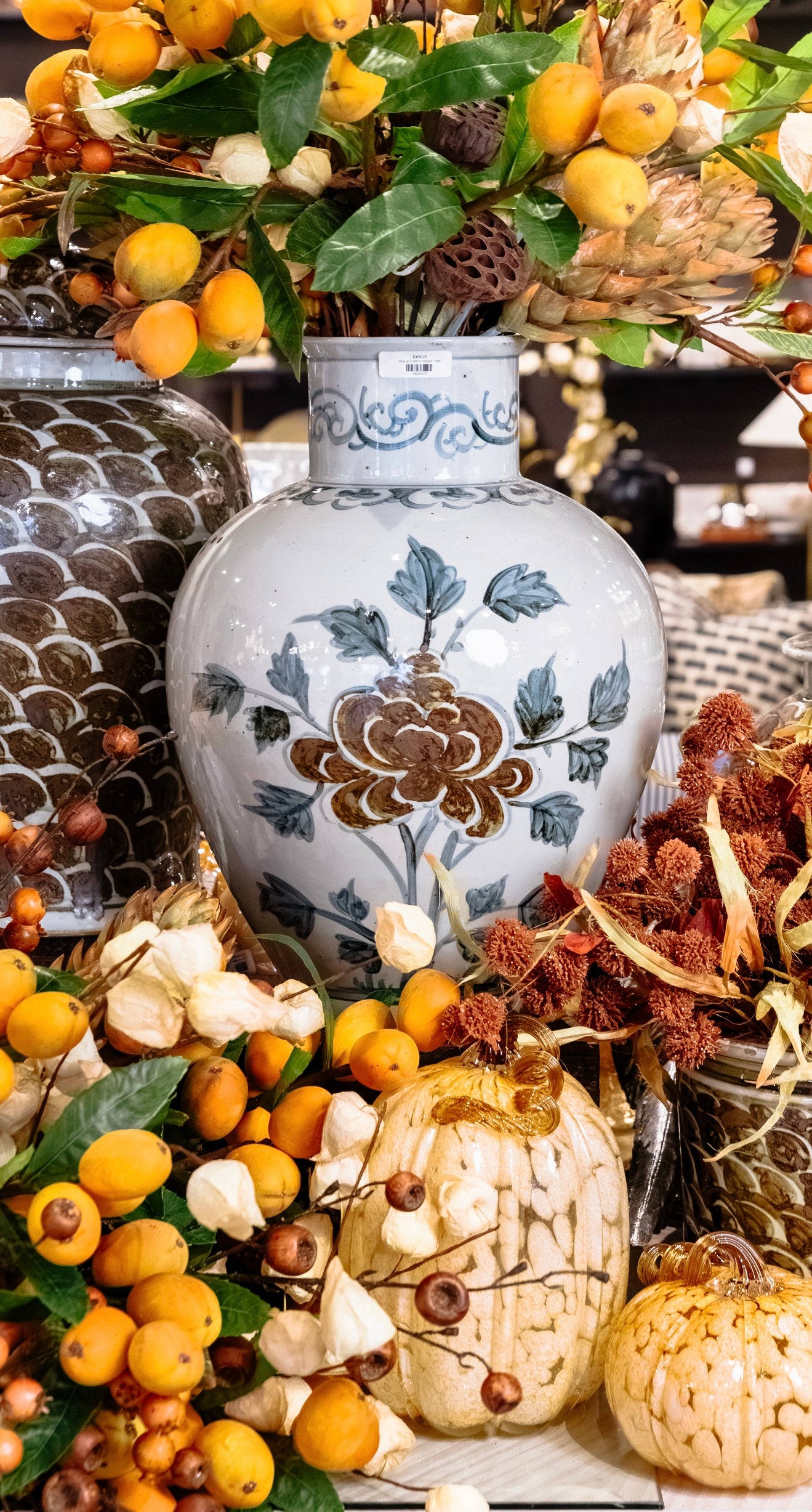 Blue & White Flower Motif Jar