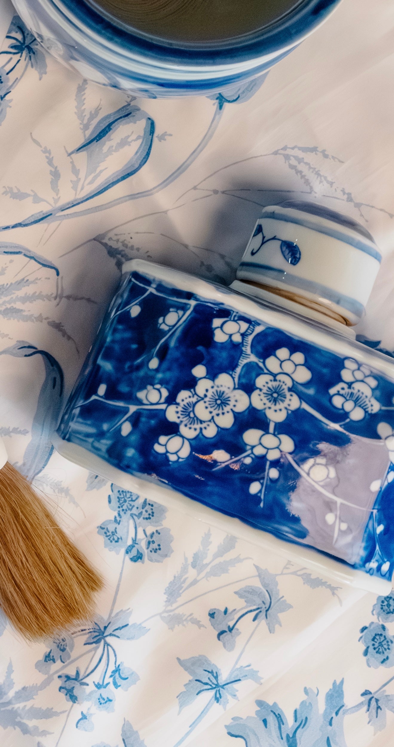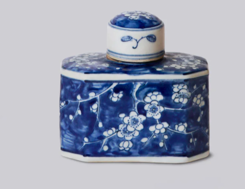 Blue and White Porcelain Plum Lidded Caddy