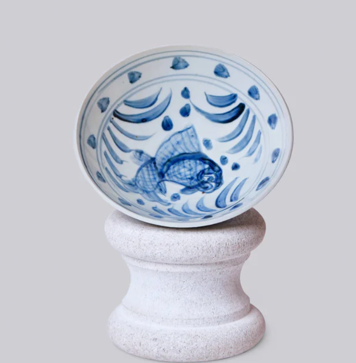 Blue and White Porcelain Carp Conical Bowl