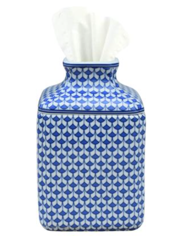 Blue and White Porcelain Tissue Box 9"