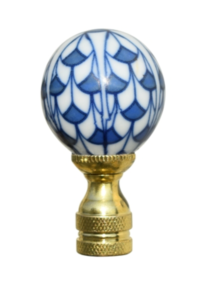 Blue and White Fish Scale Ball Finial