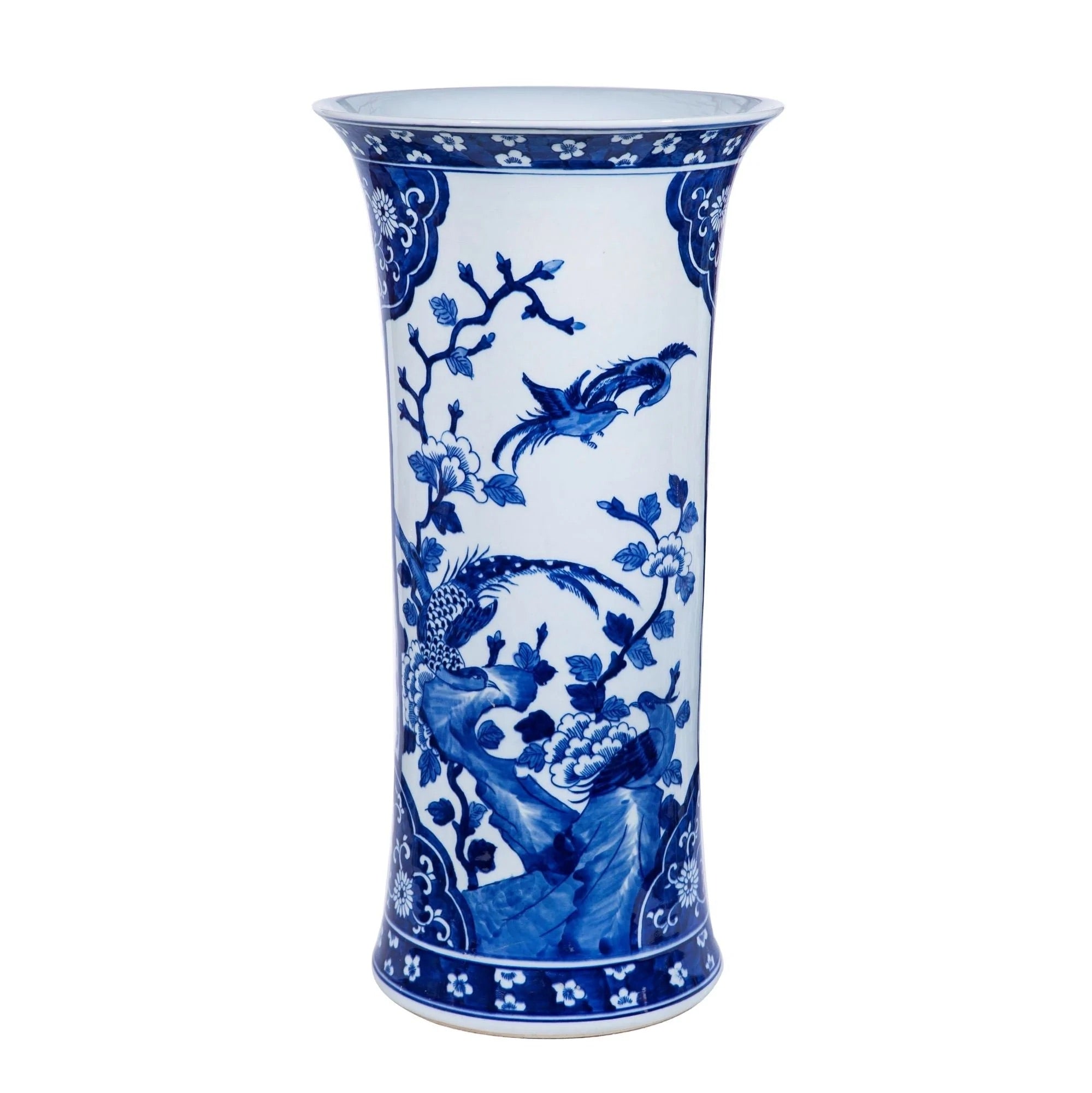 Blue and White Large Pheasant Paneled Vase