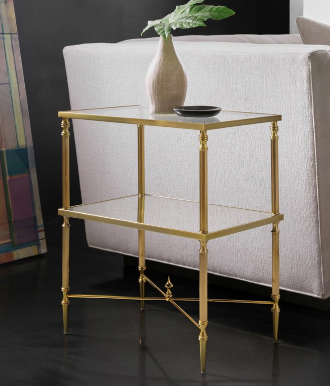 Brass Side Table with Strtcher