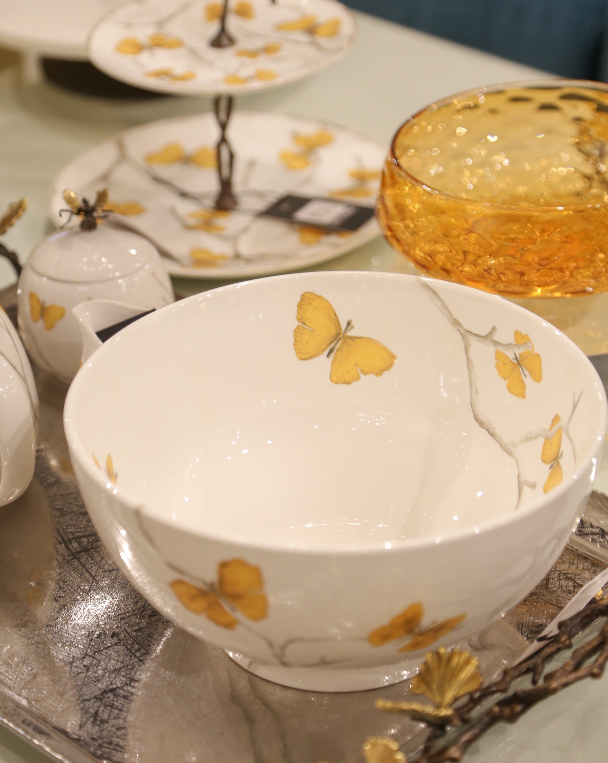 Butterfly Ginkgo Gold Serving Bowl