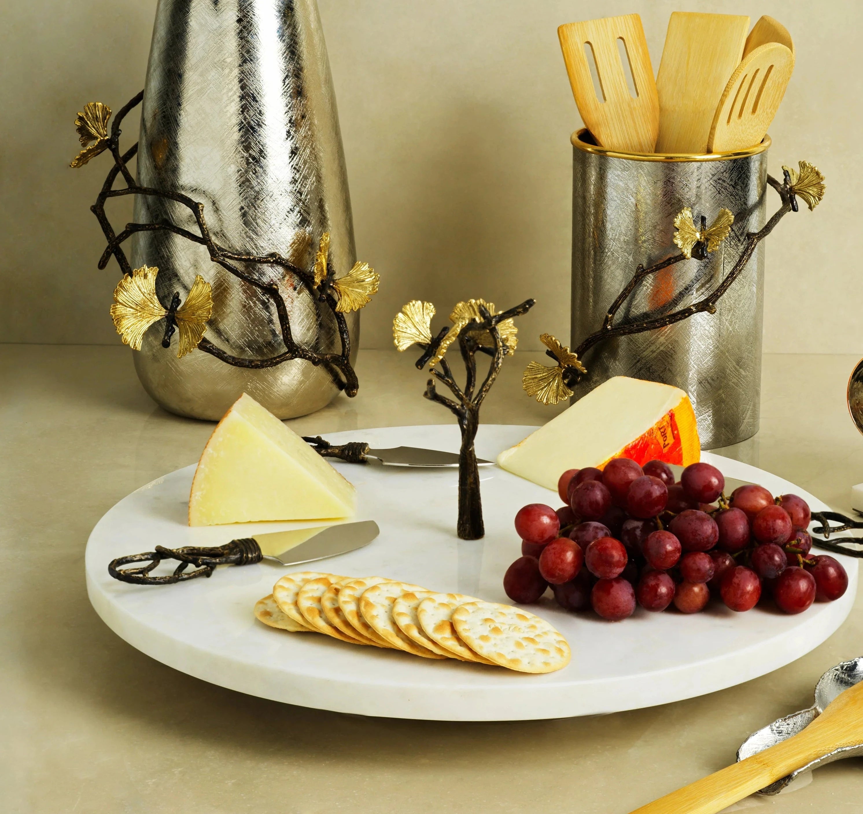 Butterfly Ginkgo Gold Cheeseboard with Spreader