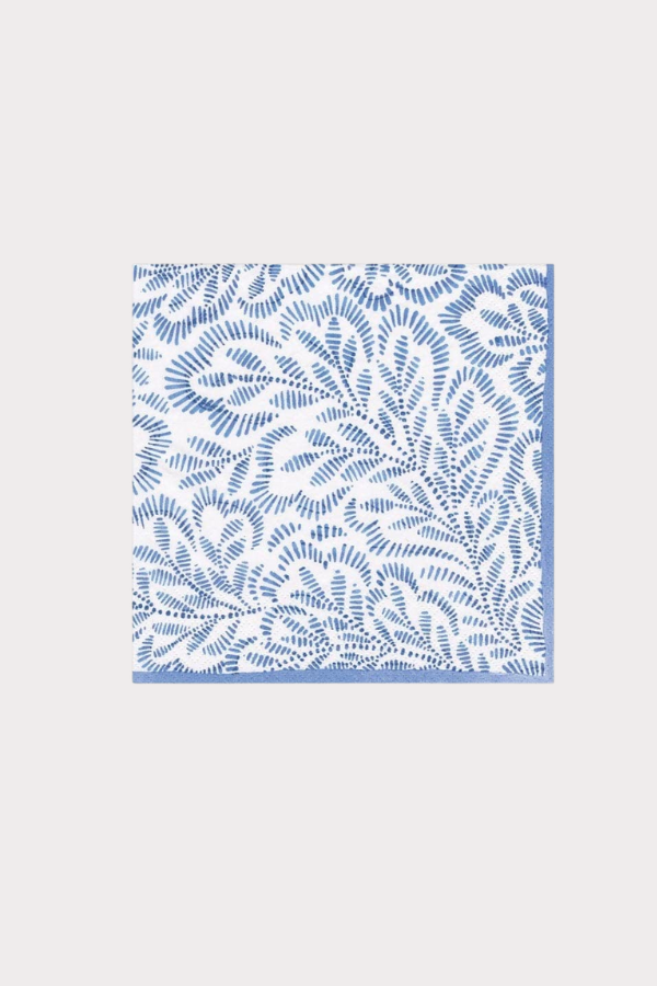 Caspari Block Print Leaves Blue Cocktail Napkin