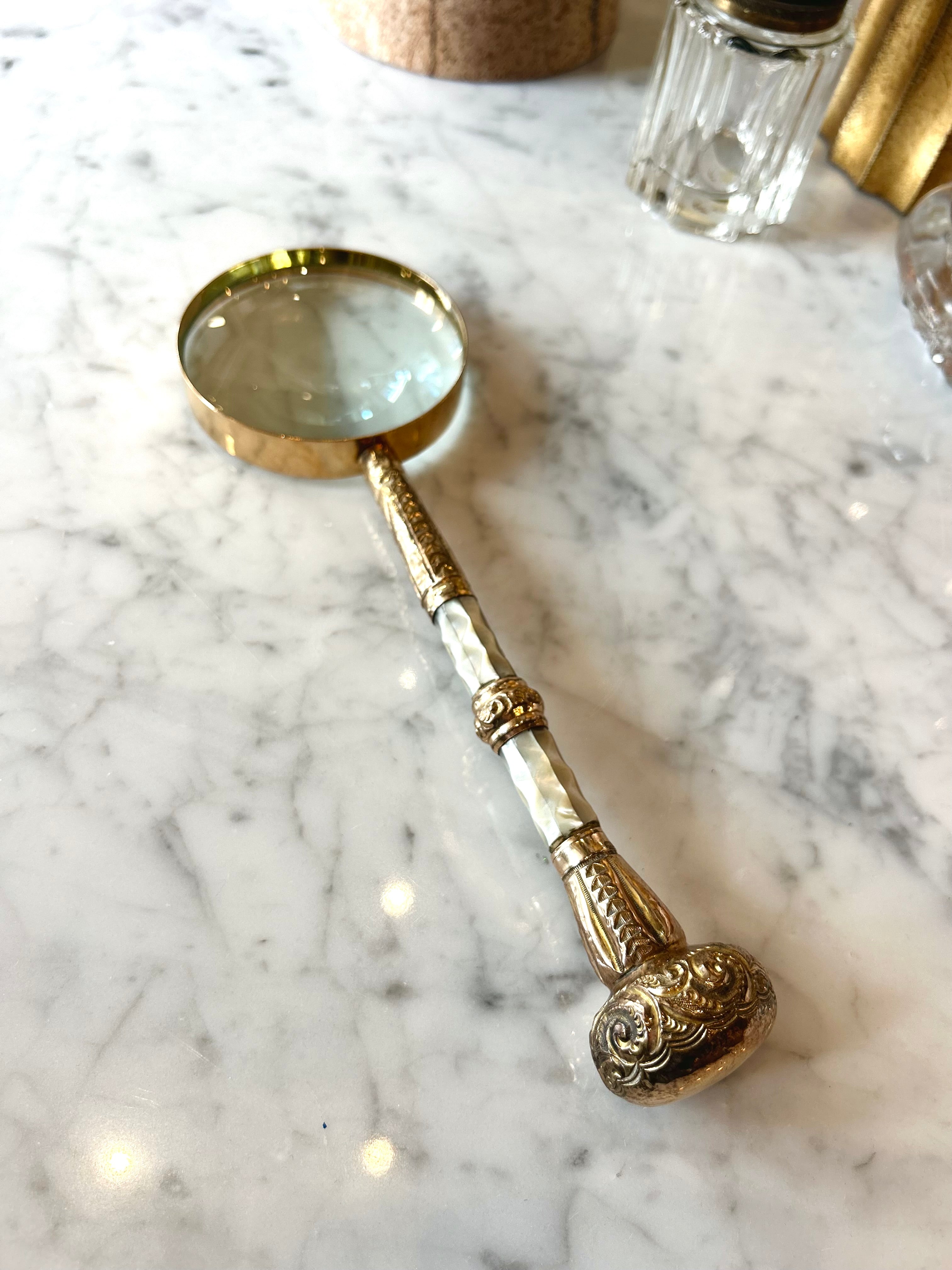 Vintage Gold and Silver Pearl Finish Magnifying Glass