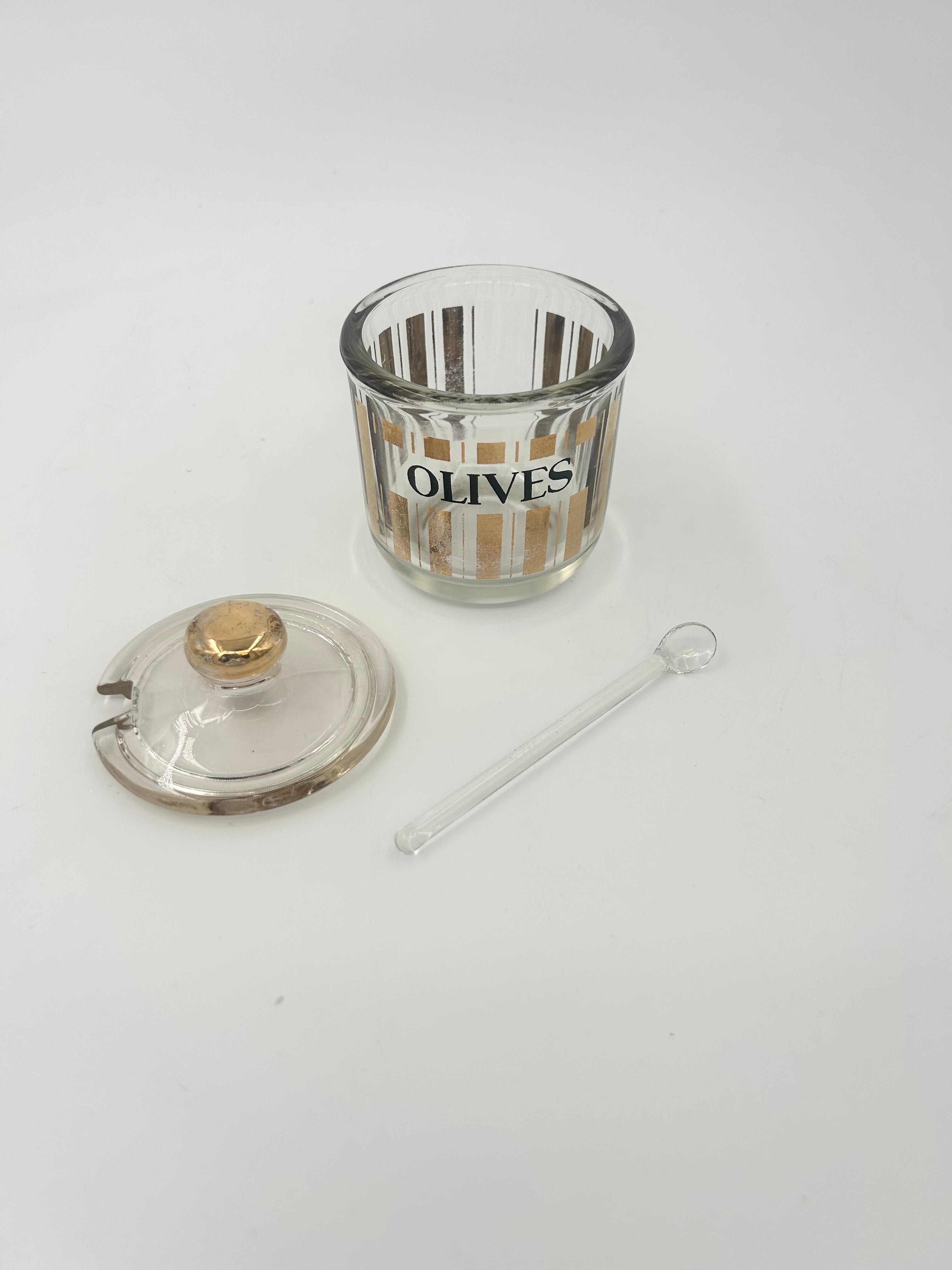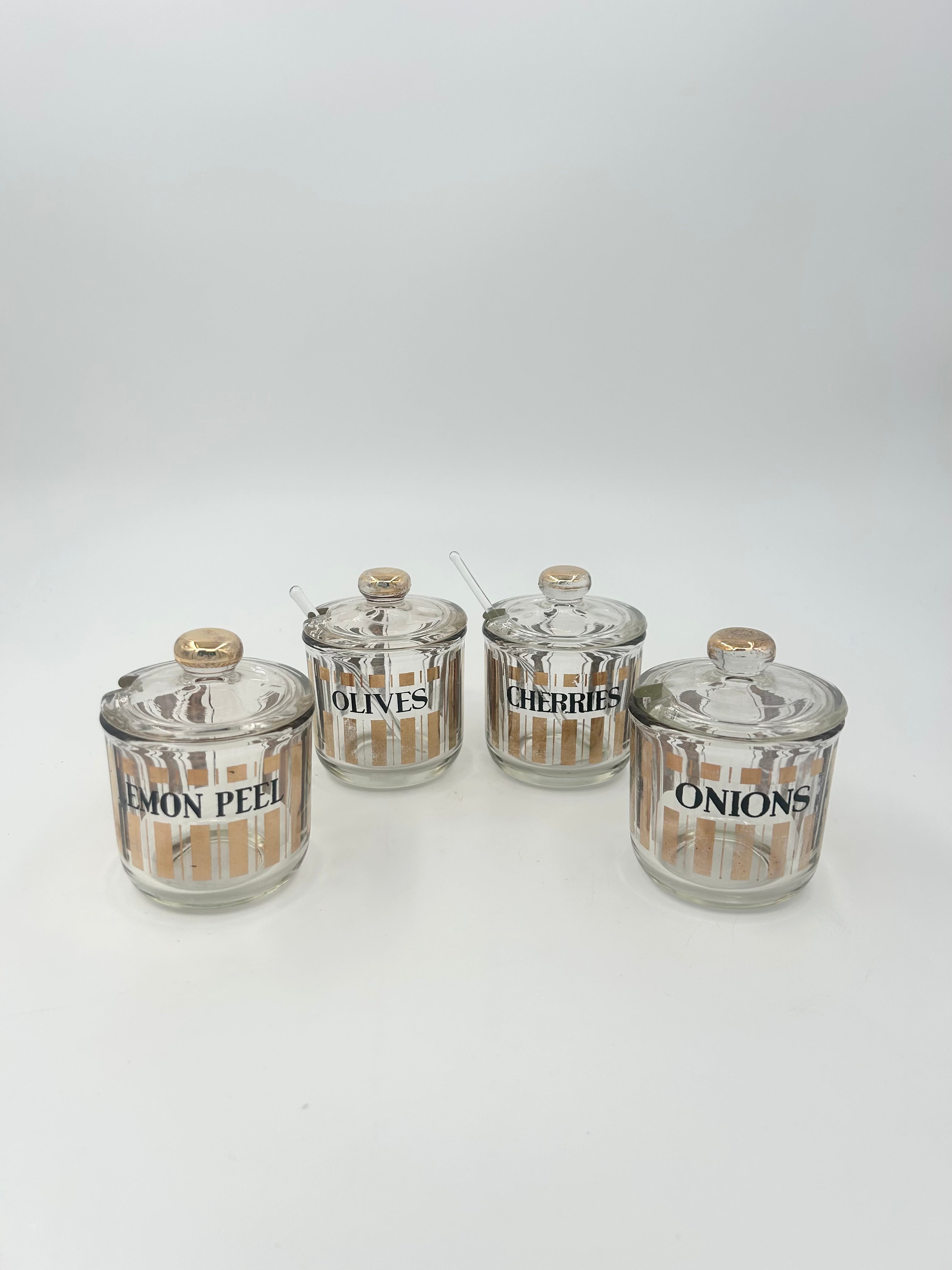 Vintage Culver Glass Pisa Master Martini Set of 4 Jars with Two Spoons