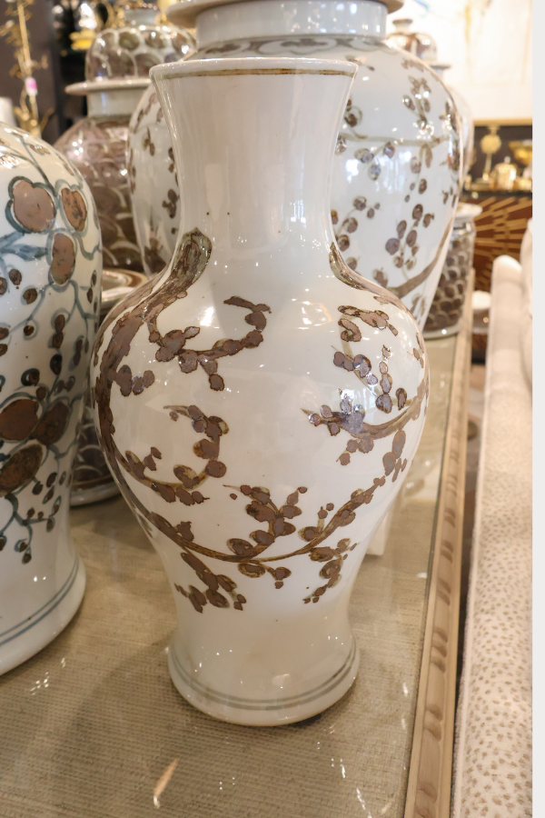 Brown and White Mini Jar Peony Motif