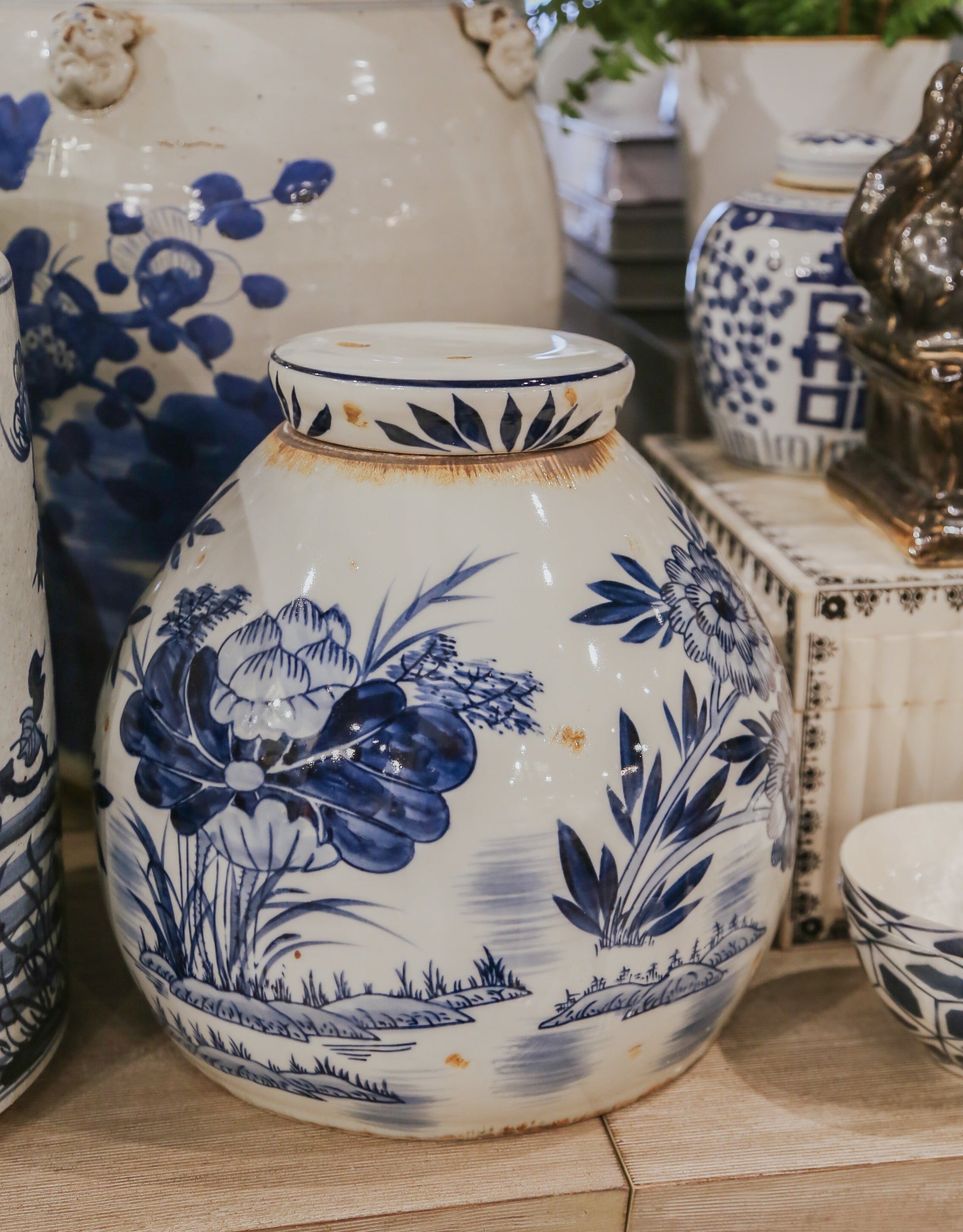 Blue and White Weed Flower Jar