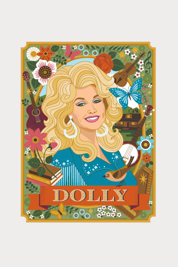 Artist Lucie Rice has captured the joy of one of music's legends. Sitting atop a stack of books, a nod to one of her many charitable efforts, Dolly will capture your heart with her million dollar smile.