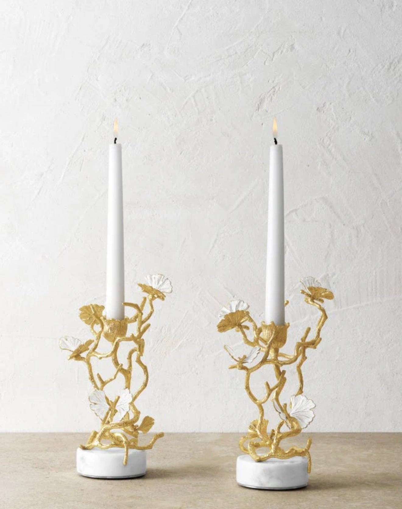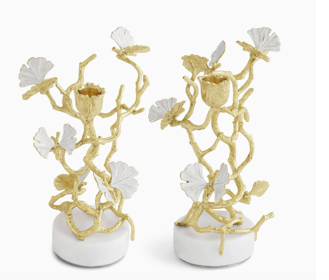 Butterfly Ginkgo Gold Low Candleholders