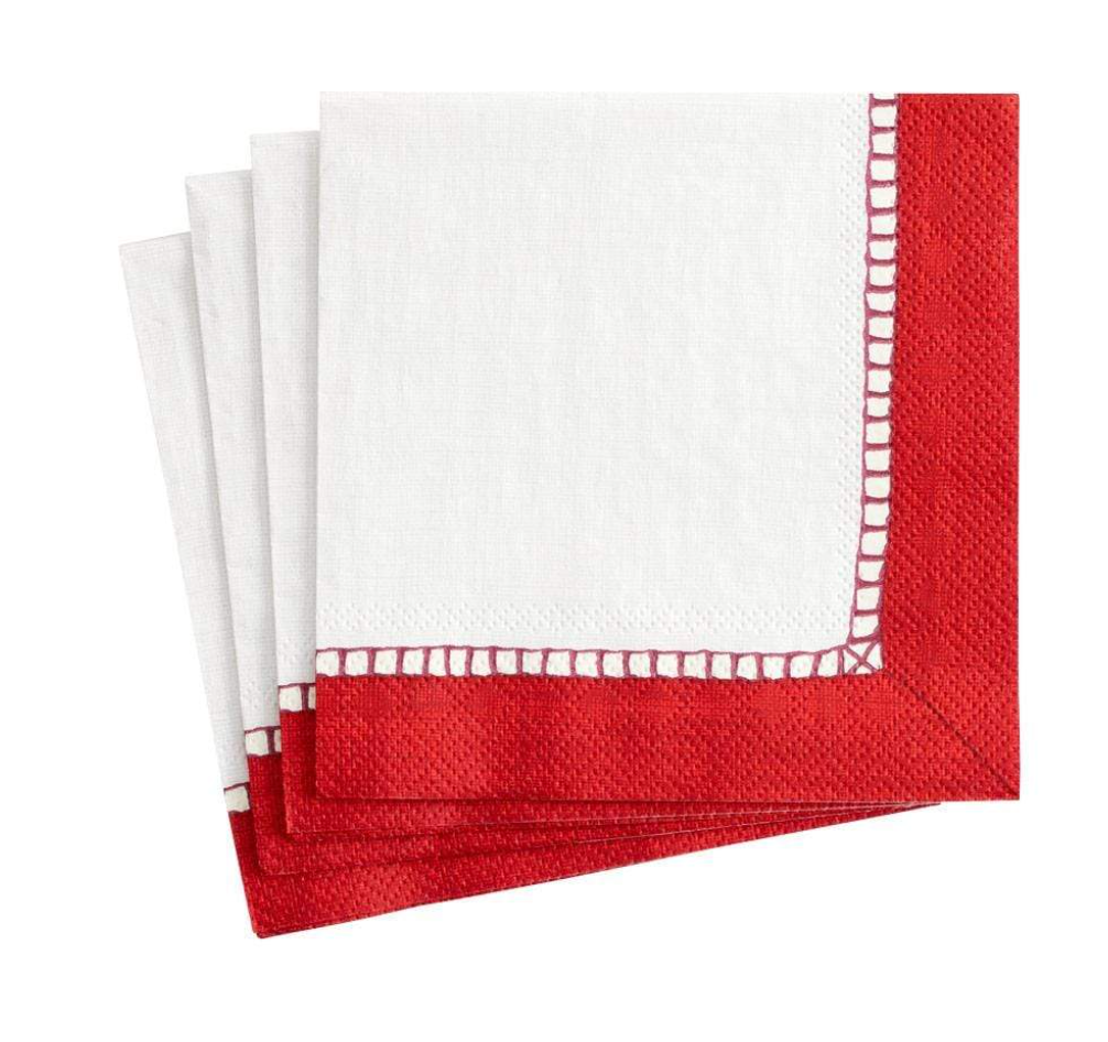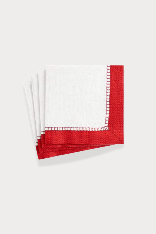 White and Red Linen Guest Napkin