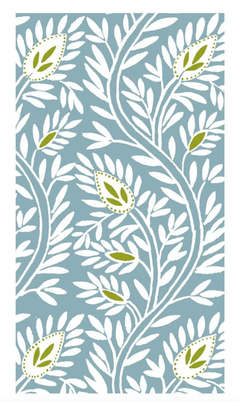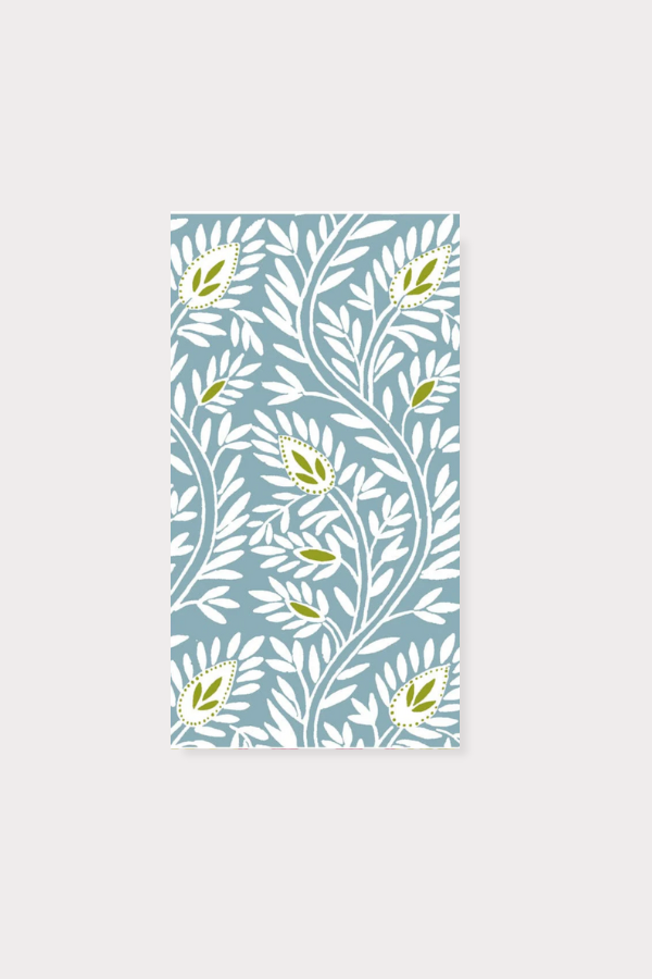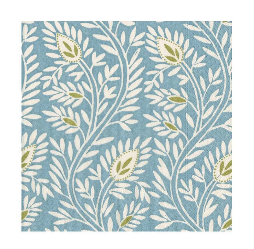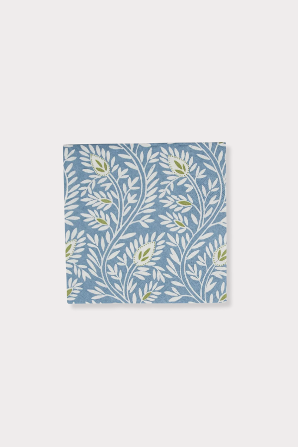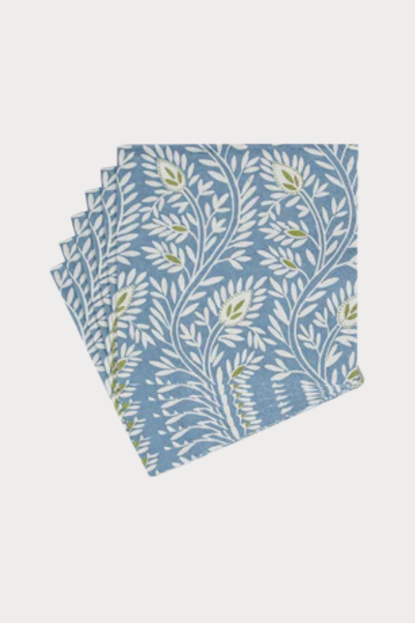 Caspari Block Print Leaves Blue Cocktail Napkin