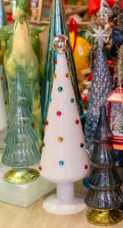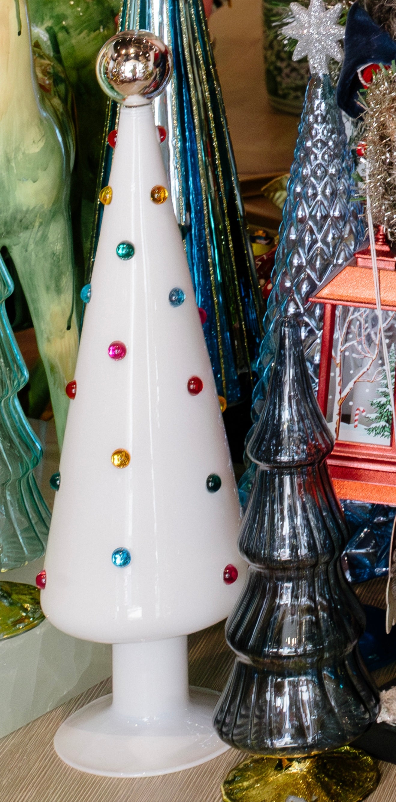 Add a splash of festive fun with the Cody Foster Decorated Dot Tree. This collectible Christmas tree features cheerful multi-color dots against a solid background, available in three sizes to brighten any space. Perfect for adding a playful pop of color to your holiday decor!