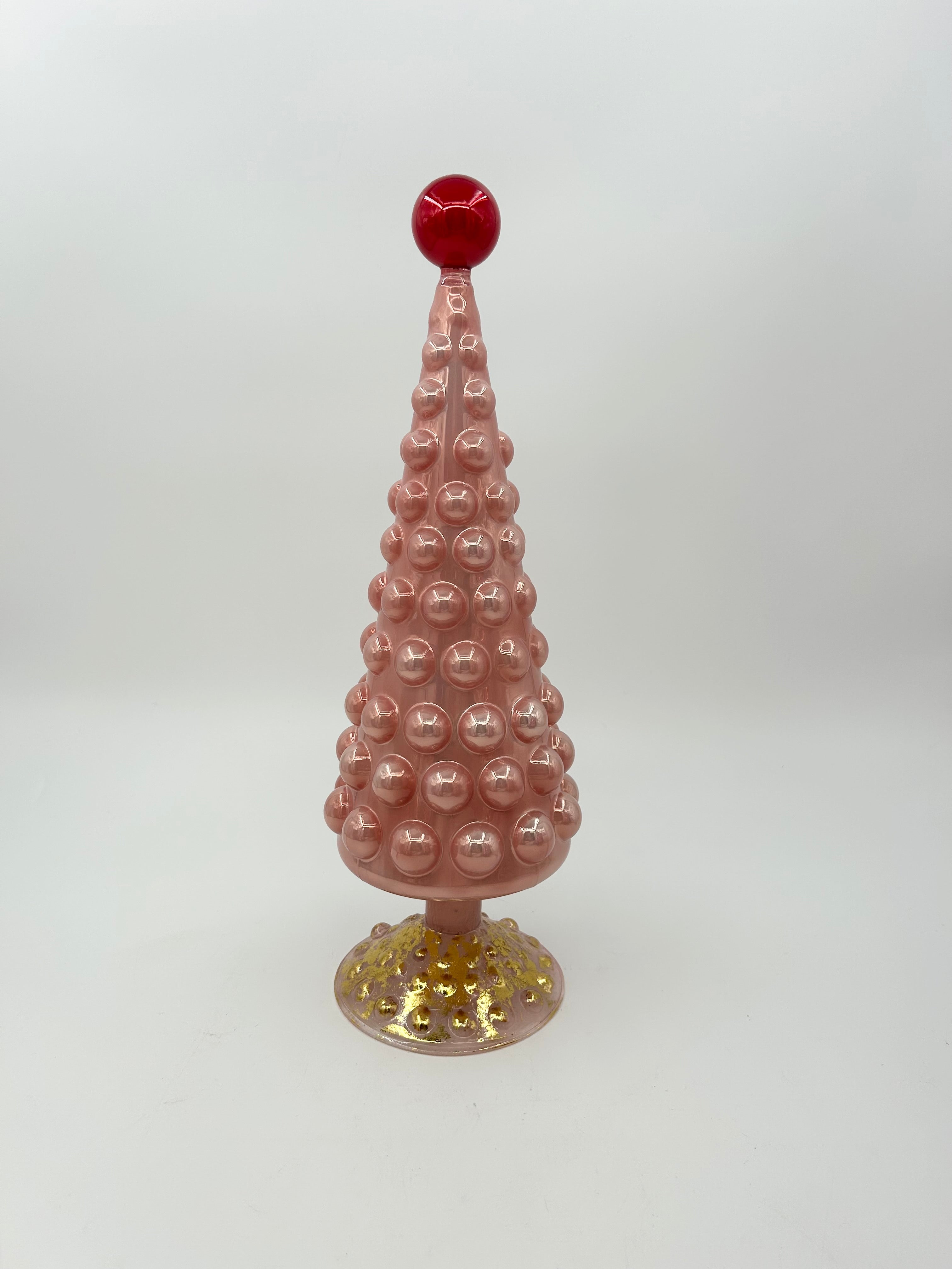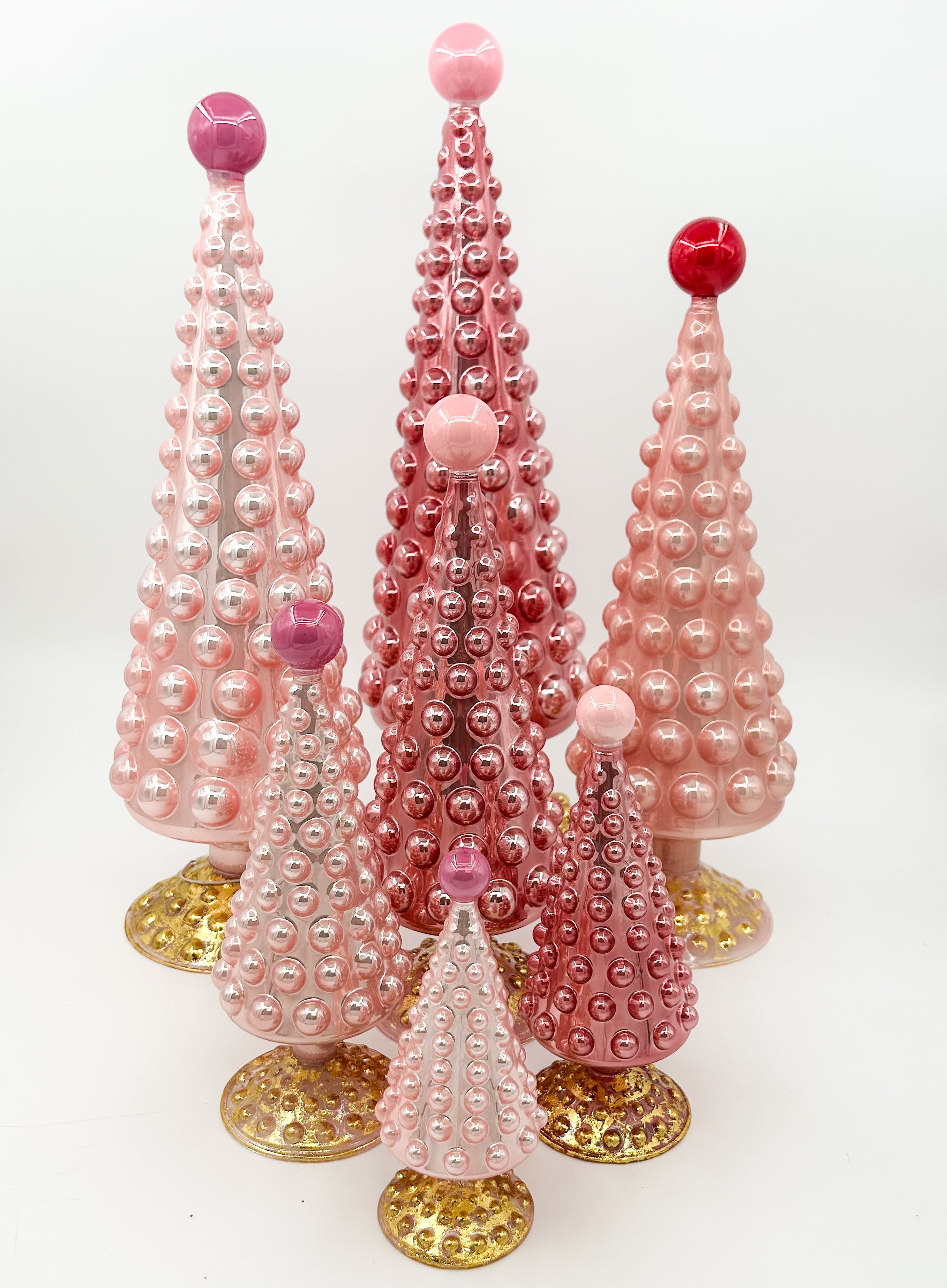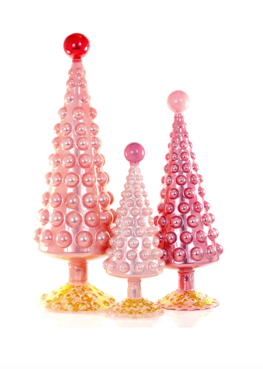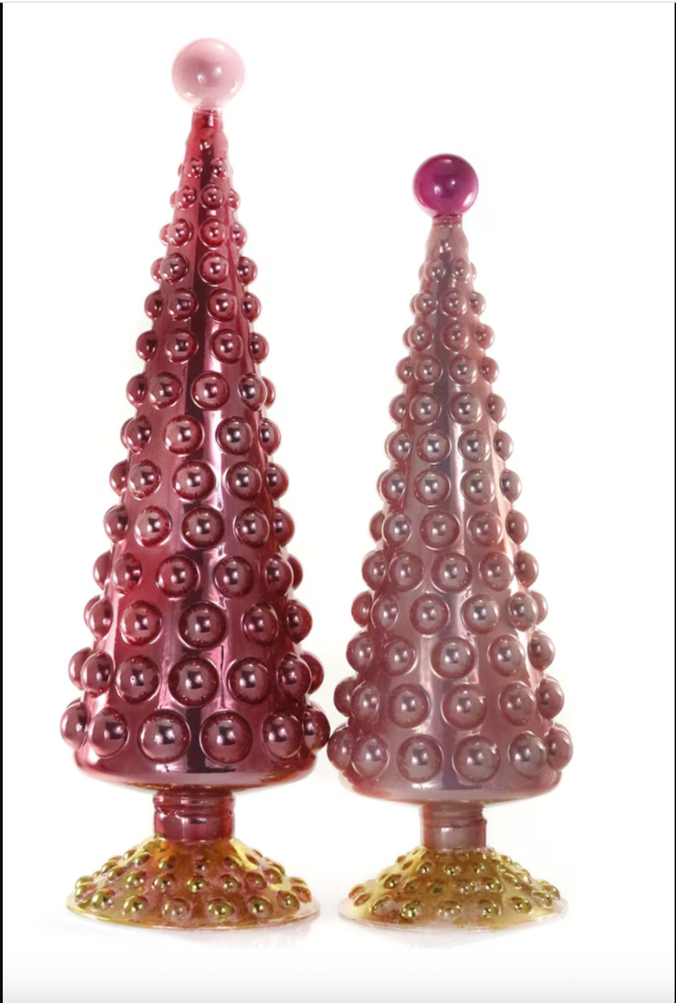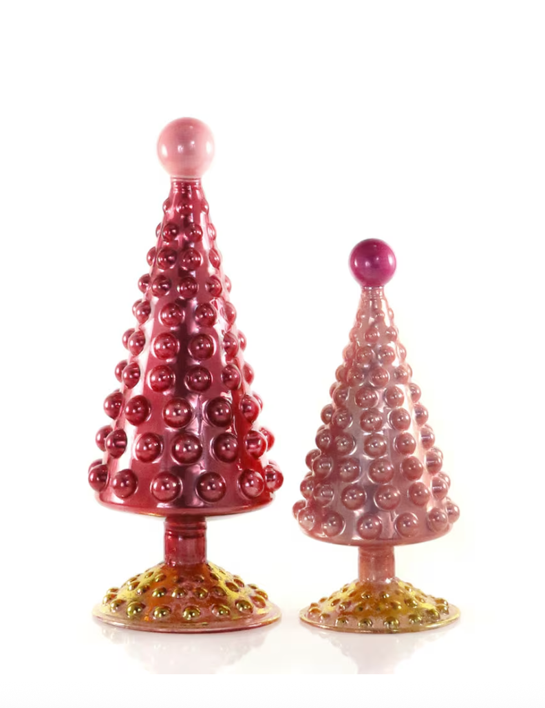 Add a splash of whimsy to your collection with the Cody Foster Hobnail Tree. Crafted from glass with charming hobnail texture, these delightful trees come in multiple vibrant colors and three sizes, perfect for mixing and matching. Whether displayed solo or as a set, they bring playful sparkle and festive cheer to any space. Collect them all and watch your holiday décor grow!
