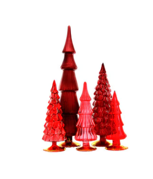 The Cody Foster Hue Tree comes in eight playful sizes and shapes, each featuring a mix of shades centered around a vibrant red