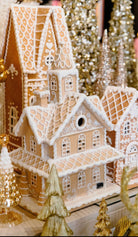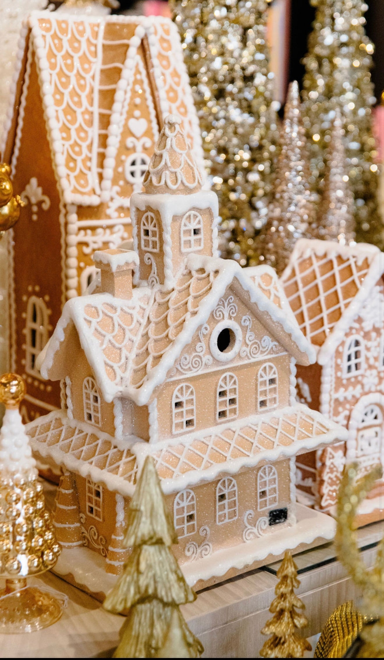 Bring holiday magic to life with this 18.5" Lighted Gingerbread House. Made from sturdy stone powder in a warm brown shade, it lights up your festivities with a charming glow. Powered by 3 AA batteries, it features a 6-hour timer that repeats every 18 hours, so your holiday cheer keeps shining bright without any fuss. Perfect for cozy corners or as a festive centerpiece!