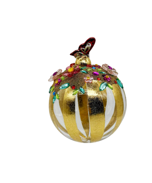 Celebrate the season with this festive Christmas ornament, sparkling with gold accents and vibrant multicolor gems. A playful butterfly tops the design, adding a whimsical touch that brightens any holiday tree or display with cheerful charm.
