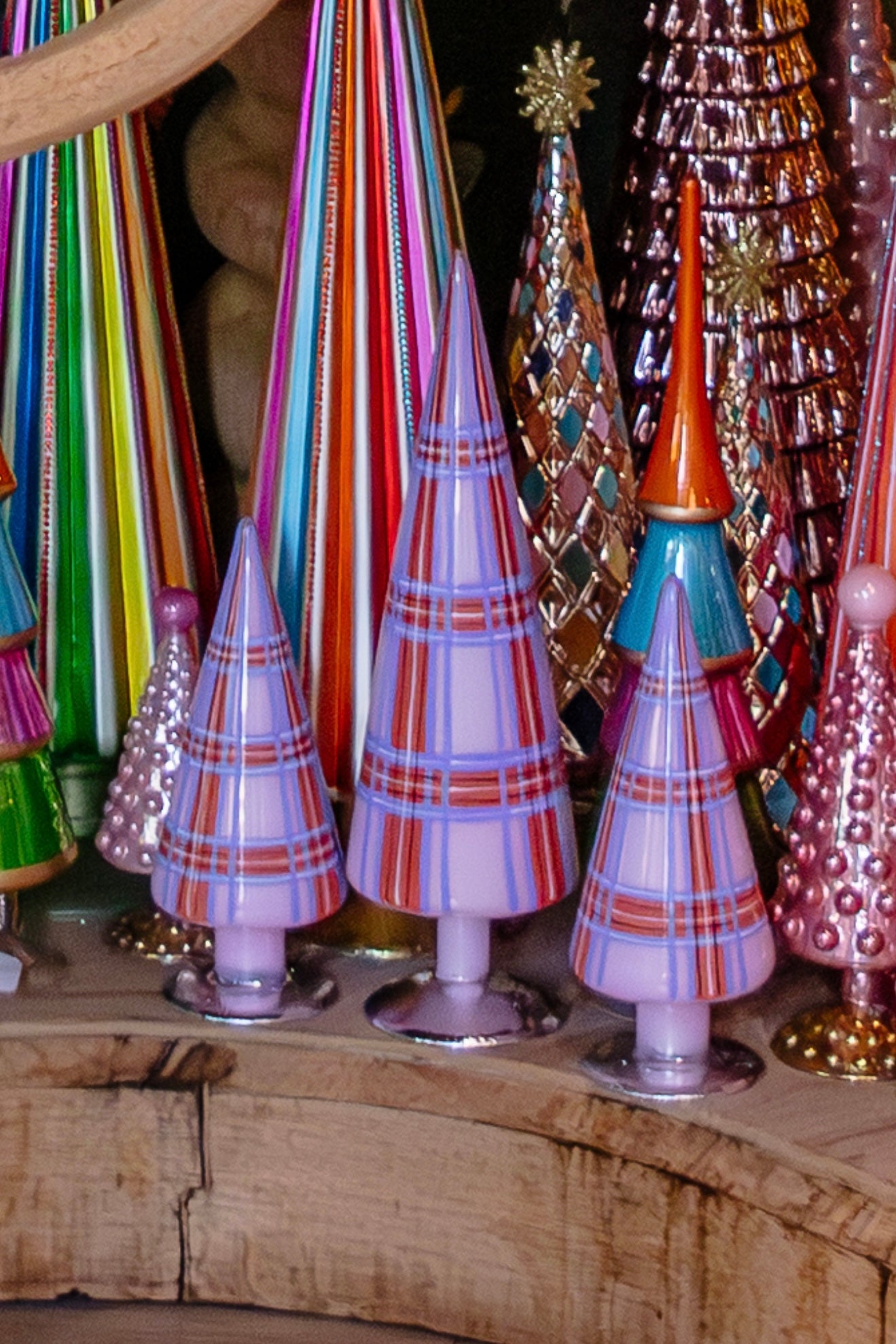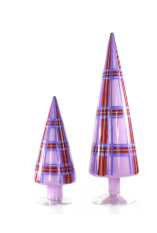 Add a splash of festive fun with the 25" Cody Foster Plaid Tree. This bright, collectible glass tree features a charming plaid pattern that brings a playful, cheerful vibe to any holiday display. Perfect for adding color and whimsy to your seasonal décor!