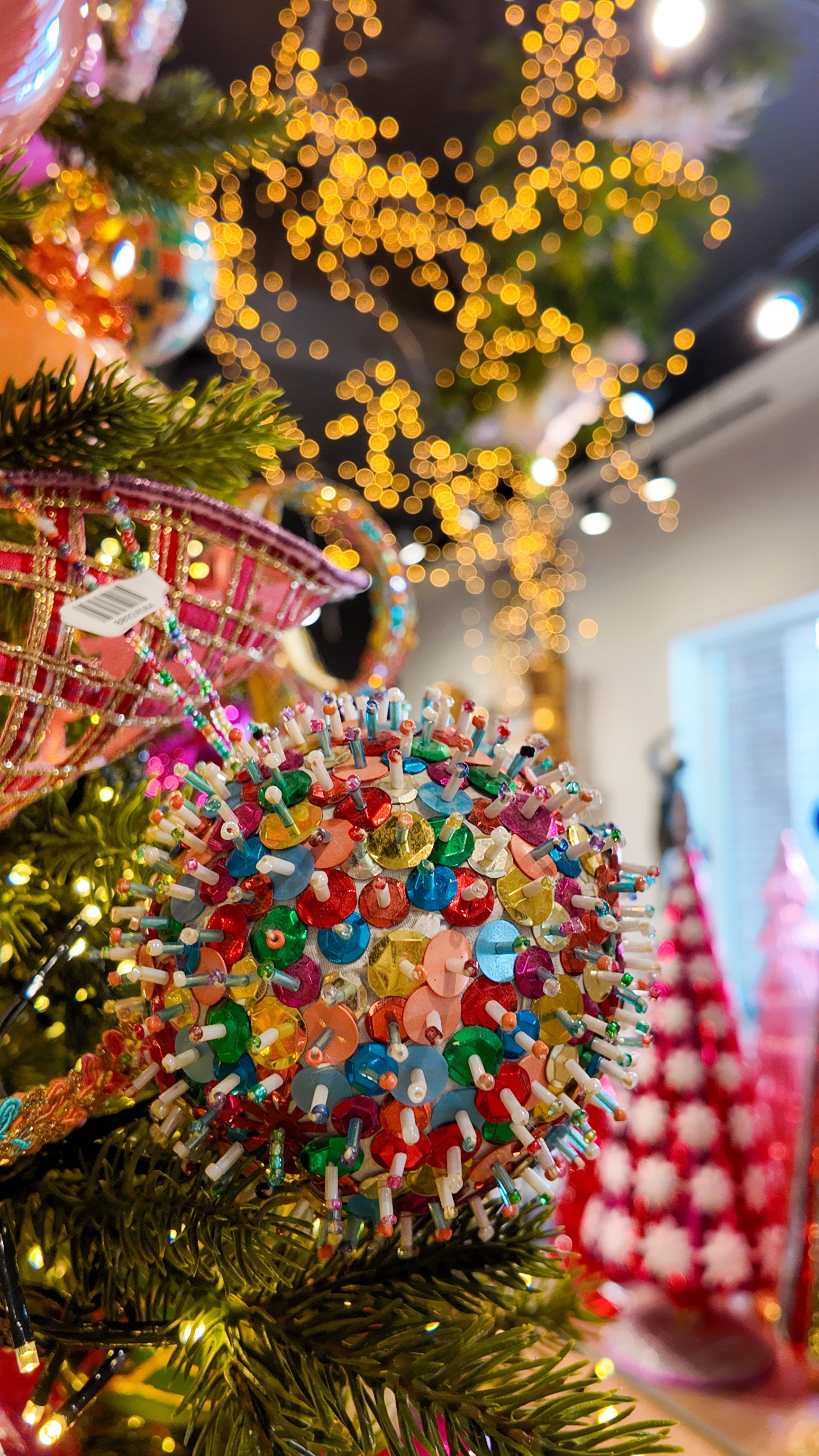 Add a touch of festive fun with this large vintage-inspired beaded bauble ornament. Its vibrant beads catch the light beautifully, making it a merry standout on your Christmas tree. Perfect for bringing a joyful, nostalgic charm to your holiday decor!
