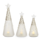 Transform your holiday décor with this enchanting set of three frosted and beaded glass LED trees! Each tree sparkles with delicate beading and a frosted finish that catches the light beautifully. The built-in timer lets you set it and forget it—perfect for creating festive ambiance without the hassle. Whether displayed together on a mantel or scattered throughout your home, these charming trees bring warmth and whimsy to any space. A delightful way to spread holiday cheer!